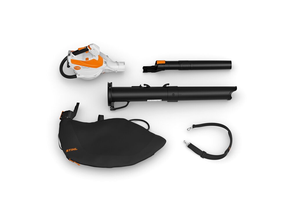 První akumulátorový zahradní vysavač s rozmělňovacím zařízením v nabídce STIHL. Jako praktické nářadí 2 v 1 vhodné k vysávání listí a drobných ořezaných větviček i k nafoukávání listí a papíru na hromadu. Přestavba zahradního vysavače s rozmělňovacím zařízením na foukač je zvlášť jednoduchá a bez použití nářadí. Rukojeť je možno otočit o 180 stupňů. Velmi dobrá ergonomie v obou pracovních režimech díky otočné rukojeti s variabilním regulátorem rychlosti. Zahradní vysavač s rozmělňovacím zařízením s přídavnou přední rukojetí, kovovou rozmělňovací hvězdicí a polstrovaným nosným popruhem. Sběrný vak se zavěsí na sací trubku a poskytuje díky svému asymetrickému designu maximální volnost pohybu nohou. Jako příslušenství se dodává zádový sběrný vak. Foukač s kulatou hubicí a s foukací trubkou lze přestavit do dvou poloh. Plochá hubice pro vyšší rychlost vzduchu je k dostání jako příslušenství.