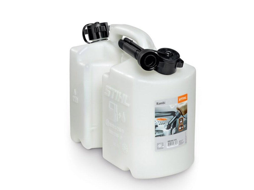Kombinované kanystry STIHL představují efektivní řešení pro dlouhodobou práci s benzínovými řetězovými pilami STIHL bez přerušení. Díky robustní dvojité nádobě s certifikací UN mohou profesionálové i soukromí uživatelé snadno doplnit palivo nebo olej do motorové pily pomocí přiložené výlevky. Uzávěry s dětskou pojistkou zajišťují bezpečné skladování kapalin podle předpisů. Průhledný plast kanystru umožňuje rychlou kontrolu hladiny paliva i oleje bez nutnosti otevírání. K dispozici je také volitelné příslušenství, jako je plnicí systém STIHL pro palivo a olej, pro snadné a čisté dávkování.